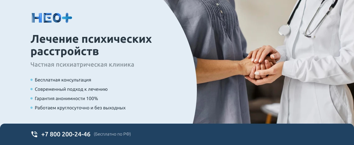 Депрессия – эмоциональное расстройство, которое влияет на качество жизни и отражается на межличностных отношениях. В запущенных ситуациях у пациента могут появляться суицидальные мысли, что делает его опасным для себя самого. Без помощи специалистов нормализовать состояние и вернуться к нормальной жизни не всегда возможно. Необходимо лечение депрессии. Провести процедуру можно, обратившись в клинику «НеоПлюс» в Невьянске. У нас работают психотерапевты, способны помочь даже в тяжелых случаях. Они проведут предварительную диагностику, грамотно поставят диагноз и назначат правильное лечение. Чтобы начать сотрудничество, позвоните по телефону ☎️ +7 (800) 200-24-46 или воспользуйтесь формой обратной связи на сайте. Доверяя лечение нам, вы ускоряете процесс нормализации состояния и сможете быстрее вернуться к обычной жизни.
